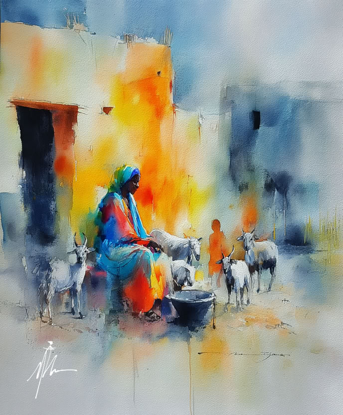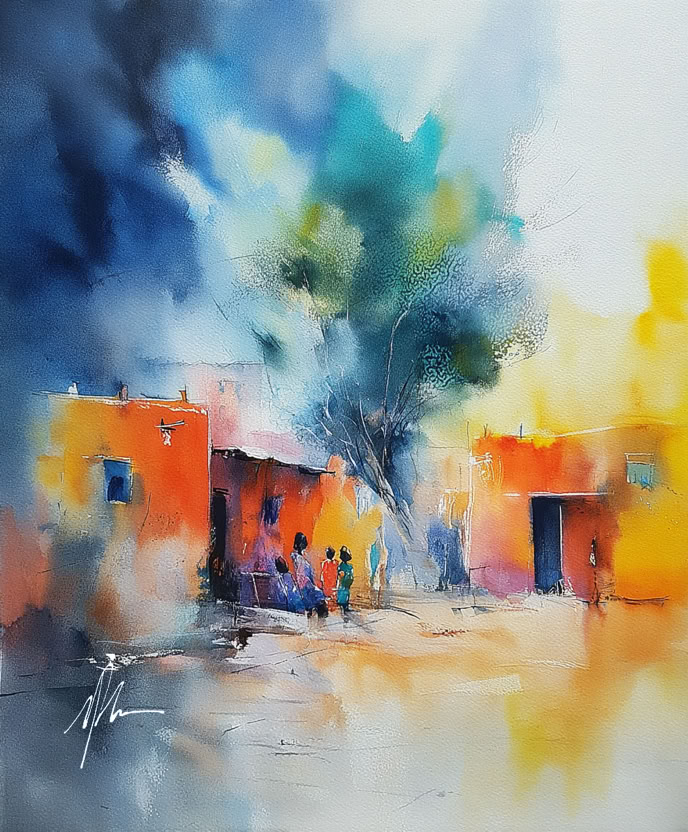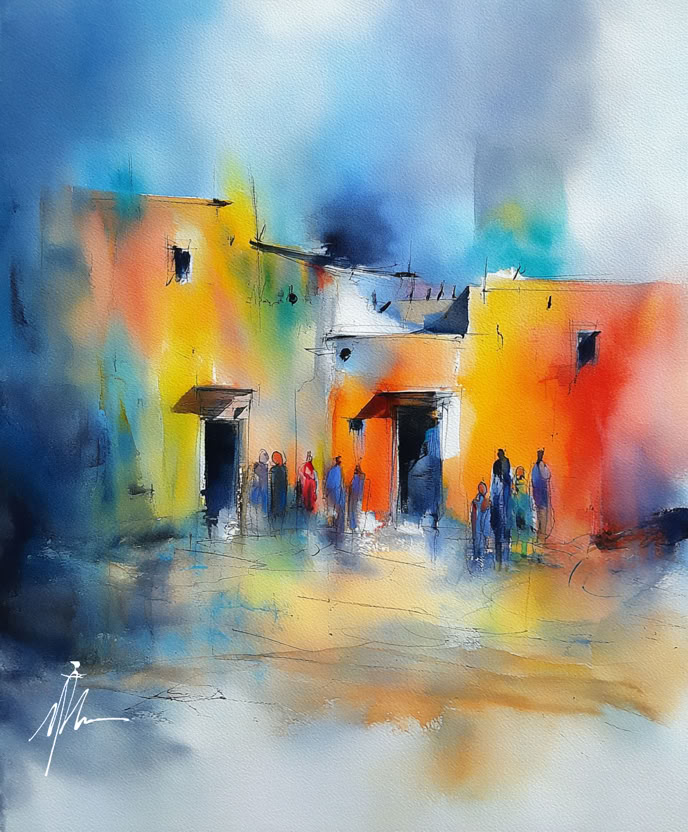 هي رحلة فنية تستحضر ملامح البيوت والأحياء السودانية القديمة، حيث تتلاقى الجدران الطينية والأبواب الخشبية والشبابيك البسيطة مع أصوات الجيرة ودفء الحوش. المعرض يوثق الحياة اليومية كما عاشها جيل الطيبين؛ بمشاهد من البيوت، الأحياء، الأسواق، والمزارع، في لوحات تحمل الحنين والبساطة وتعيد إحياء ذاكرة المكان بروح معاصرة